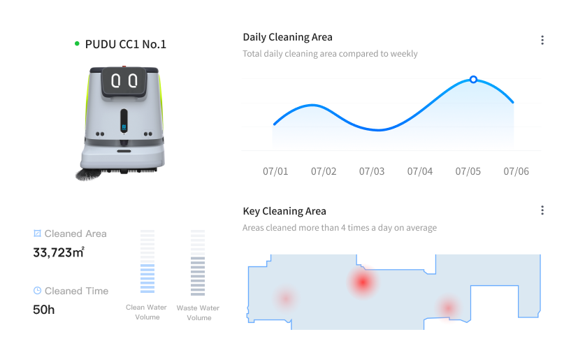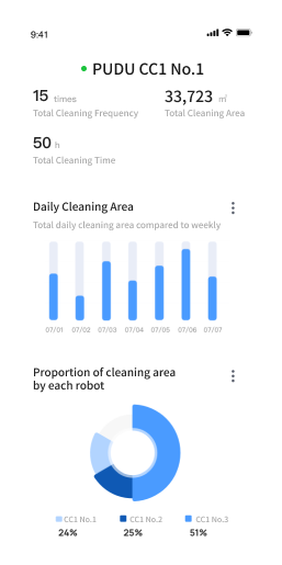 Obtenga notificaciones e informes en tiempo real sobre el rendimiento de la limpieza. Obtenga notificaciones en tiempo real sobre el rendimiento de la limpieza, como por ejemplo el tiempo y la zona de limpieza.